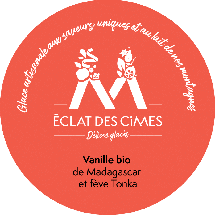Lait entier de la Ferme de la Faurie (Le Sappey en Chartreuse), crème entière pasteurisée de l’Ain, sucre de canne, dextrose, glucose, jaune d’oeufs de poules élevées en plein air en Chartreuse, lait en poudre, gousses de vanille bio de Madagascar (0,3%), farine de guar, farine de lin bio, fibres végétales bio, fève tonka (0,01%)