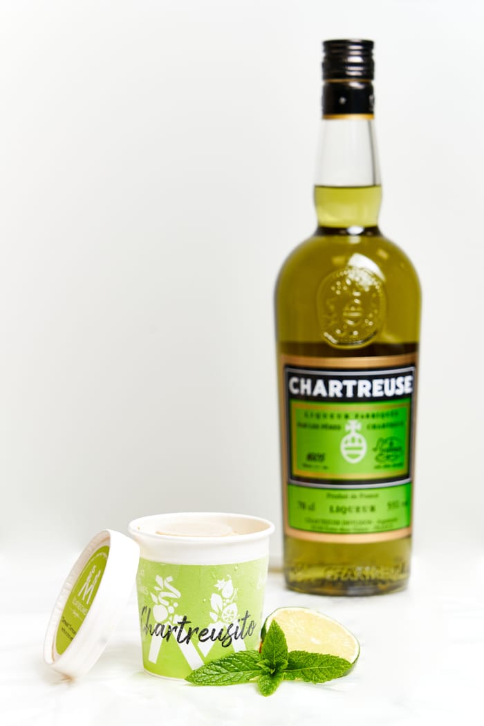 Quoi de mieux pour passer une bonne soirée en savourant ce sorbet au goût acidulé du citron vert, à la fraîcheur de la menthe et la délicatesse de la Chartreuse verte.