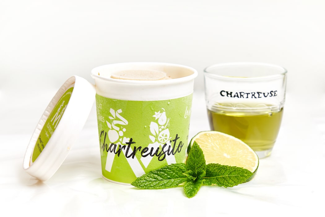 Ambiance festive ! Une inspiration du cocktail de nos montagnes : le célèbre Chartreus’ito revisité en sorbet !